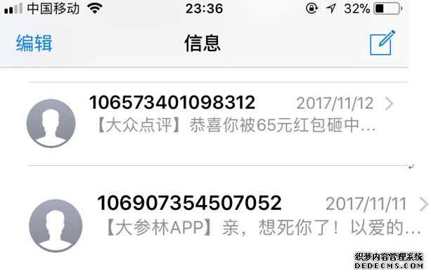 當我們查閱兩條短信內容時,會發現,短信要表達的意思大致相同,都是送紅包,但排版的不一樣,導致最后兩條短信內容的點擊率存在了差距。所以說,排版時,主要將重要信息放在前面,讓用戶在短信預覽時就能夠迅速的抓住重點,并促使用戶打開短信閱讀詳細內容。